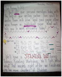 Katherine Bomer talked about celebrations this past summer at the TCRWP July Writing Institute. As I was planning my News & Announcements Charts for the upcoming week today, I found myself wanting to write about writing on four out of five of them. You see, I want my students to realize that their hard work will pay off… we will have a writing celebration at the end of the week. While celebrations are fun, they’re often hard to work into the schedule. In fact, I found myself wondering, “Do we really need to have a full-blown celebration this Friday? We have so much else to do.” I answered my own question with a sharp, albeit internal, YES!