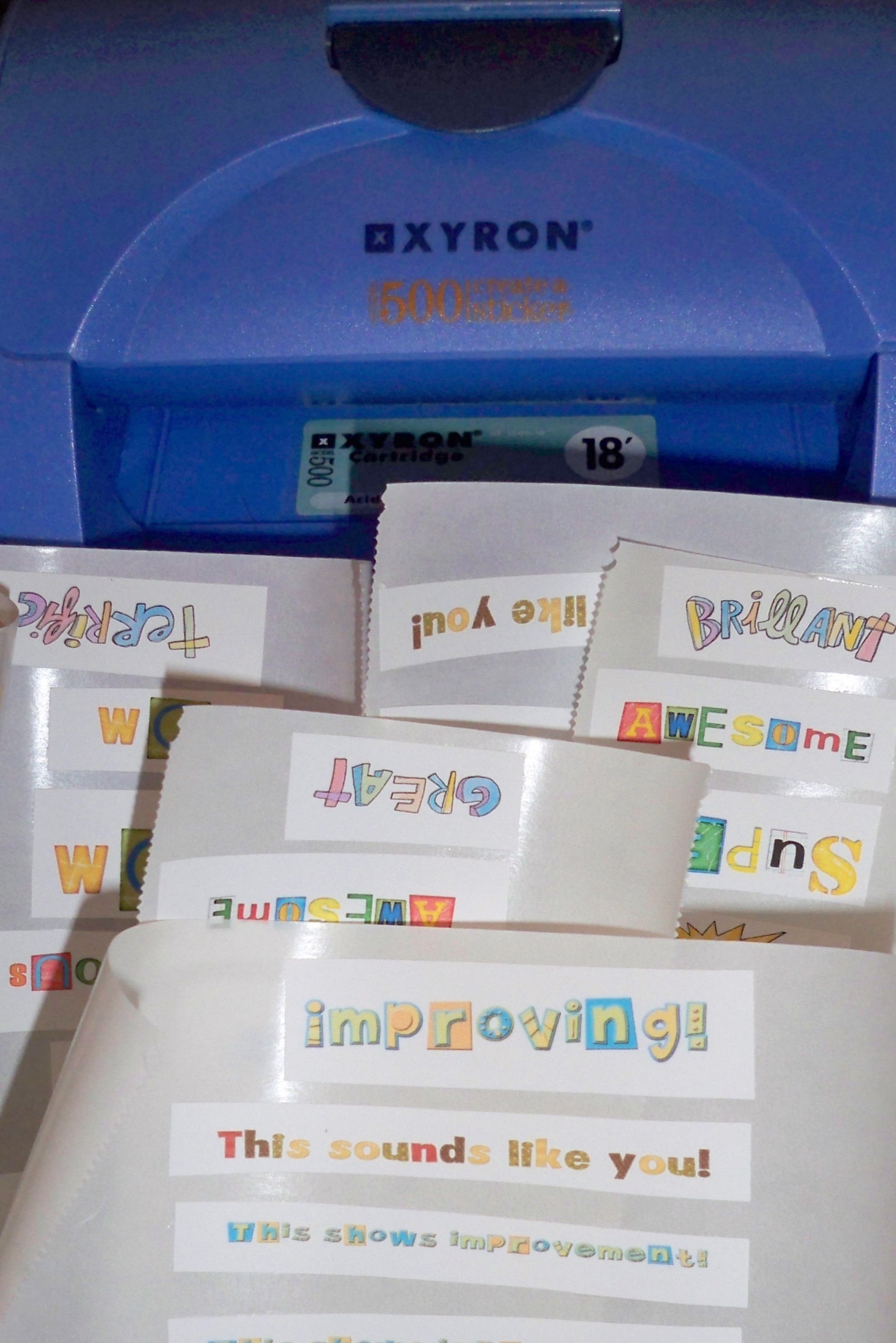 I tried it out today using my Creative Delights Companion Software (you can download it for free by clicking here) and am extremely happy with the results. I especially like the fact that I can create any message my heart desires and then turn it into a sticker for my kids. (Some examples of stickers I created are: “This sounds like you,” “Reasons are clear,” “This shows improvement,” and “Excellent Idea.”)