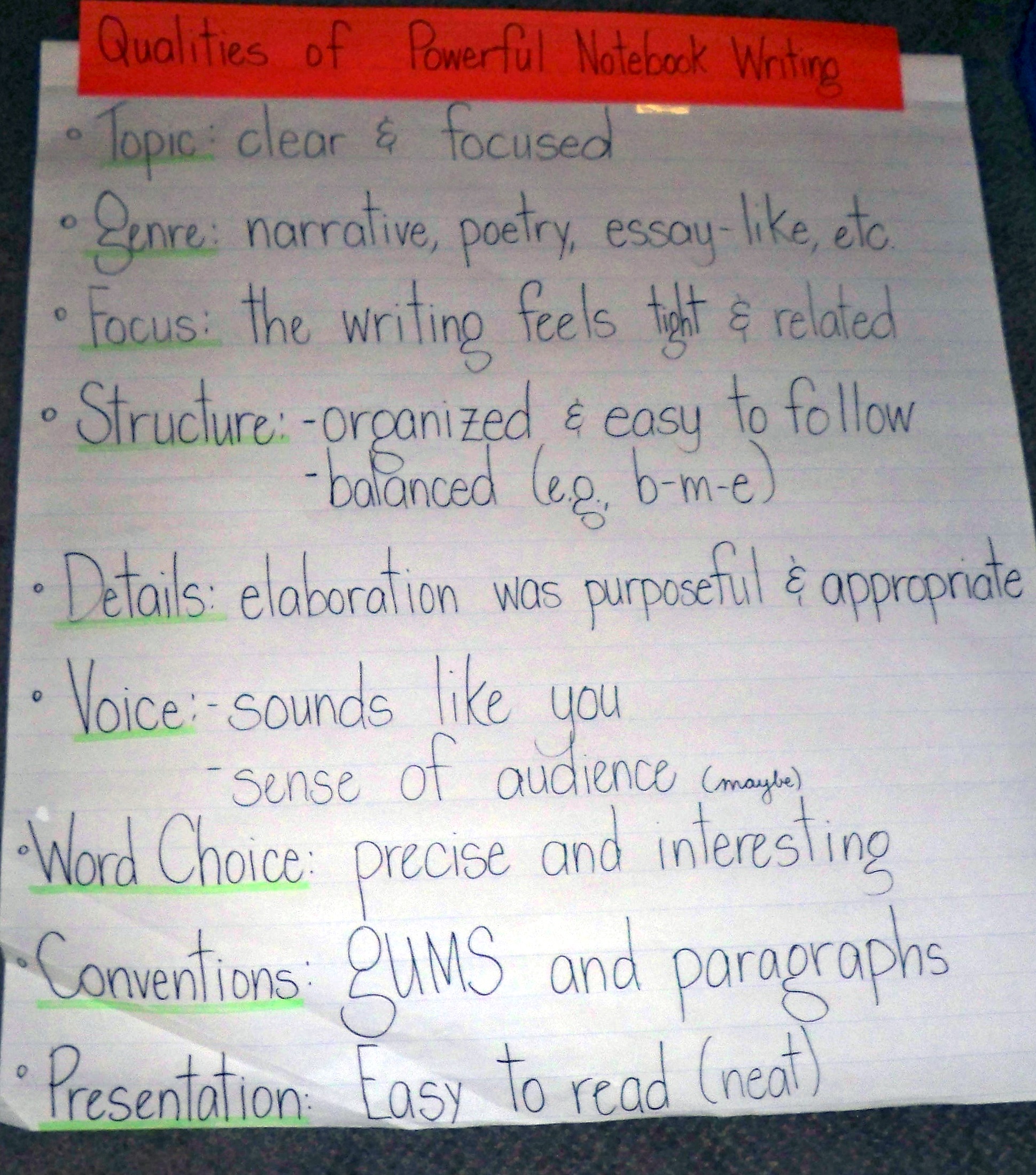 Sometimes you have to let go of the reigns and allow your students to lead you, right. Well, I’m preparing to do just that tomorrow when I work with my students, during Writing Workshop, to create a new notebook rubric. (I’ve been using one that is slightly adapted from Buckner’s Book since 2006.)