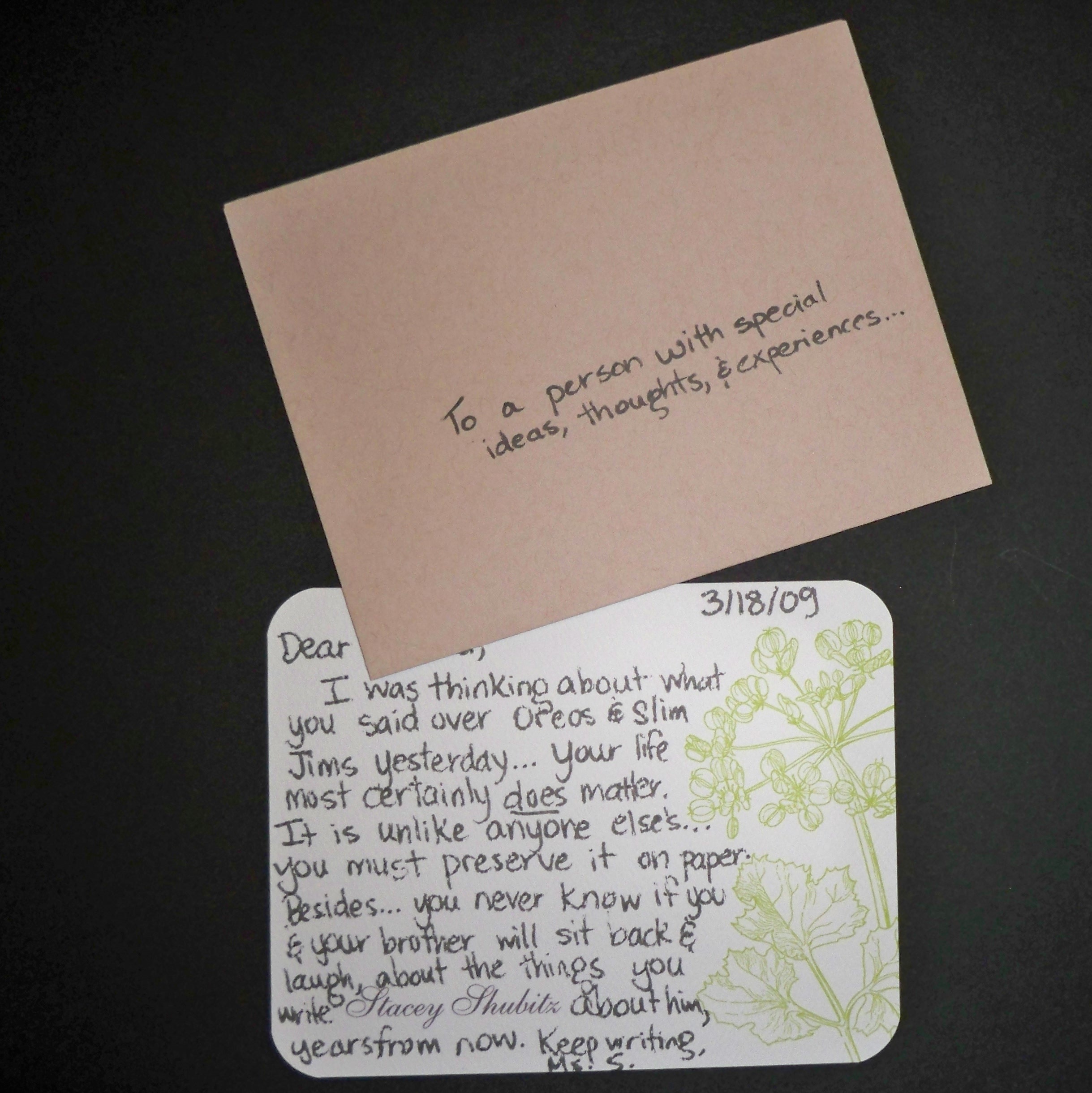 “C’mon, you and I don’t have exciting lives, but they’re worth writing about… they’re a record of our days.”