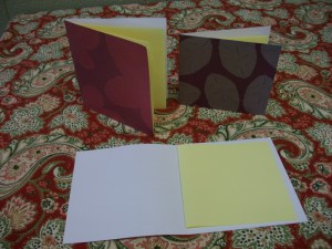 *You’ll need some paper for the cover. The blue and white booklets are donated card stock.  The red cover is a leftover junior football registration flier I rescued from the recycle bin. Two booklets have donated paper inside, and in one I used the writing paper that has been in the storage area for years when the lower grades switched to a different style.