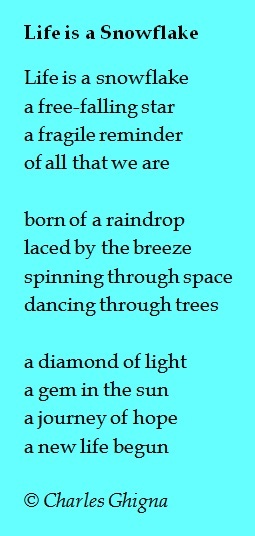Structure-of-the-Month – We might set up a constant bulletin board highlighting one structure for each month. If the structure for October is a list structure, the board will include an explanation of this structure, a poem such as Charles Ghinga’s “Life is a Snowflake,” read aloud books on the chalk-rail written in this structure, and student pieces which reflect this way to organize writing. If we’re lucky, we’ll find a quote about organizing writing like this, and if we’re smart, we’ll include a diagram of how the structure works. Students can decide and draw how to represent various structures visually.