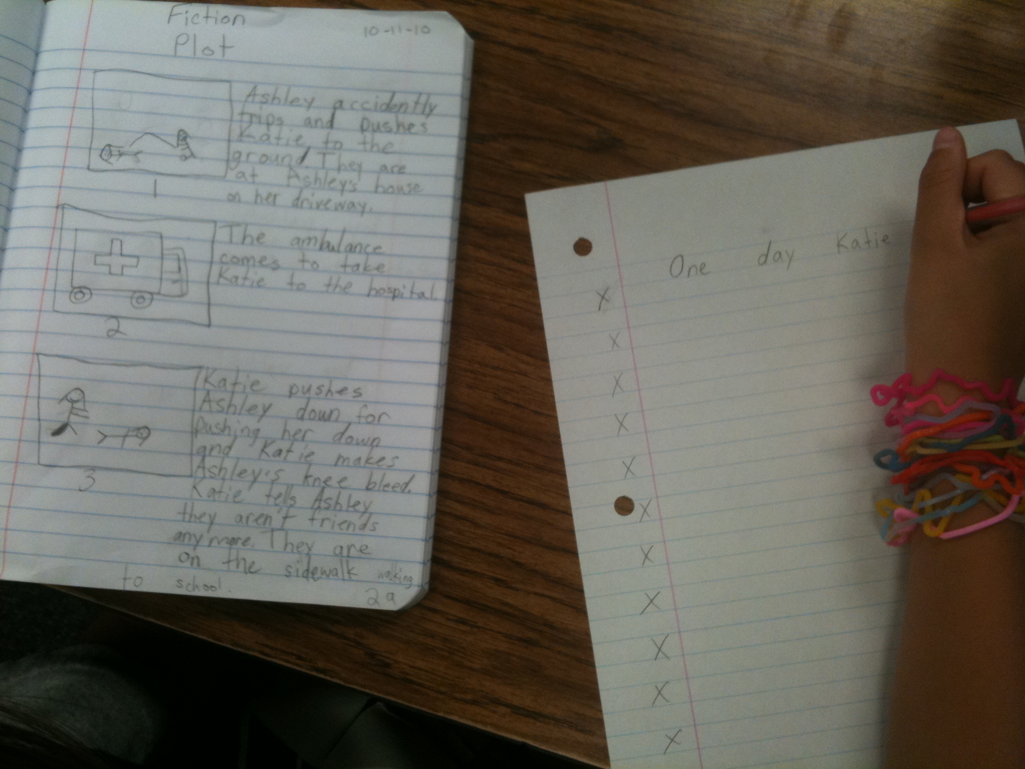 5th Grade Fiction: I introduced five narrative elements to students: character, plot, setting, conflict, and point of view (these are based on Indiana’s state curriculum guide). Then I showed them entries from my notebook centered around these different elements. We invited students to begin creating their fiction story by starting at any of these places. It was neat to watch the organic nature of envisioning a story take over. The longer I teach writing, the more I move away from a lock-step process.