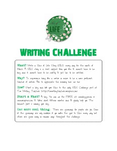 • Prizes will also be given on random days throughout the challenge. It’s about writing because it’s good for you. Life will happen and for some of us it will hit harder than for others. Just because you aren’t able to complete 28/31 days doesn’t mean you fail. Don’t give up if you happen to miss three days early in the month. Writing is supposed to be fun.  This is why I’m donating the “writer’s packs.” I want to give them away just for attempting the challenge. Completely on a whim, I’ll select days to choose a random Slicer for a writer’s pack.