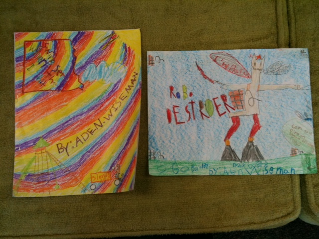 He was pleased with his work, so I kept my teacher mouth closed and encouraged him to think about making the picture more of a focus next time. He kept coloring. The next day he colored more. The third day was like sprinkling salt in a wound — I wanted his cover to be more meaningful. I wanted it to represent the story inside. And I was beginning to think he was wasting his time coloring. (I can’t stand wasted time on coloring.)
