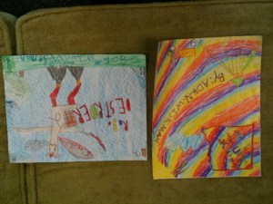 I took a photo to remind me that growth takes time. He had a plan for the cover on the left and just because we had a conversation didn’t mean he wanted to abandon his plan. He imagined people choosing to read his book because of the rainbow cover. I could have forced him to make a new cover for the book on the left. What good would that have done? What would he have learned?