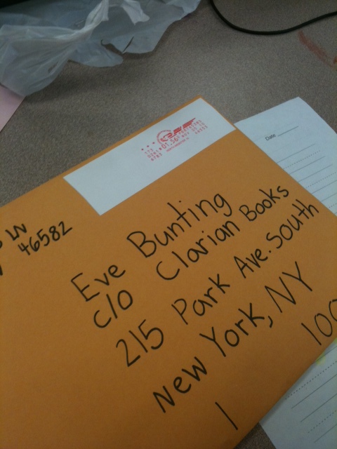 Remember this letter that Allie sent to Eve Bunting last fall along with The Ghostly Scary Mystery she wrote dedicated to Eve Bunting? Allie got a response! Yes, there was a form letter, but she also received a personal note from Eve. Wanna see the response? Click here.