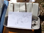 I have clipboards throughout my classroom, at the ready, for both children and me to use. I encourage children to write or draw what they see, what they remember, what they imagine or plan to do. Through a variety of learning experiences and art tools, three year olds will make lines, circles, squiggles… when I see these on their clipboards, in their artwork, or at my sign-in, I know I am seeing the beginning of writing. Soon they will be making letters, and writing their names (often backwards at first, and then forward with practice, nudging, and growth). Most threes are writing their name by the end of the school year.