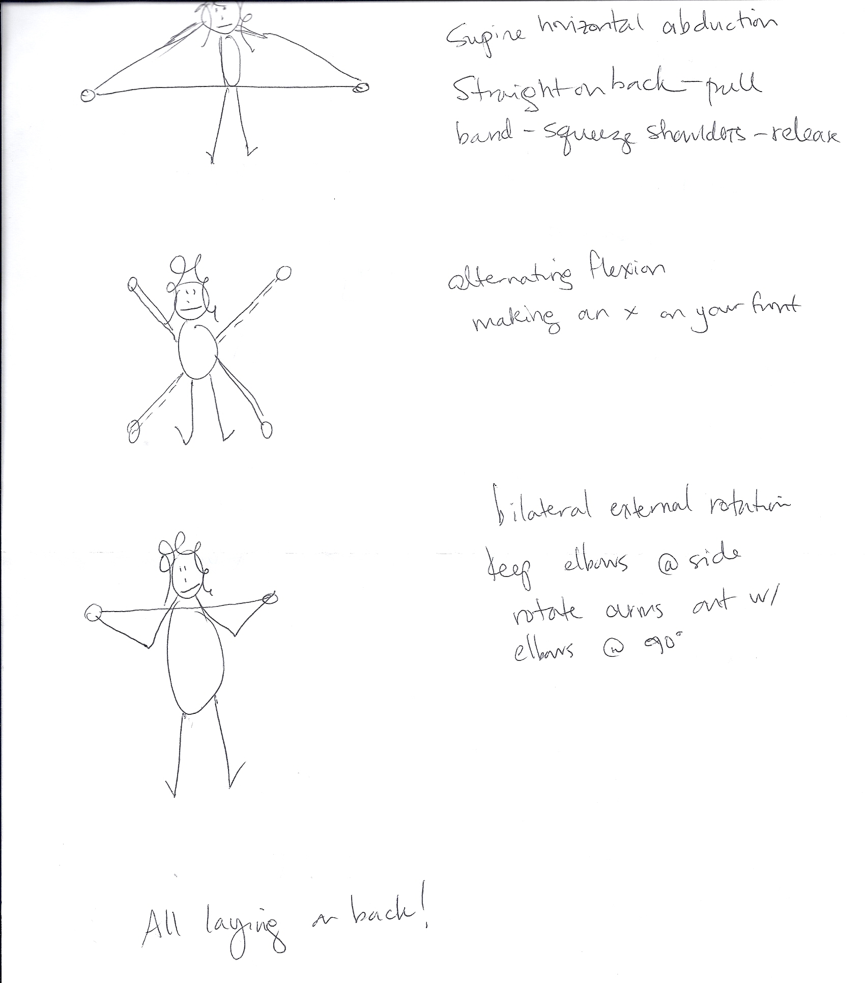 Three New Theraband Exercises. The small circles at the end of my "arms" represents the ends of the TheraBand tube. The dotted line, in the second picture, represents the "x" I have to make with my arms.