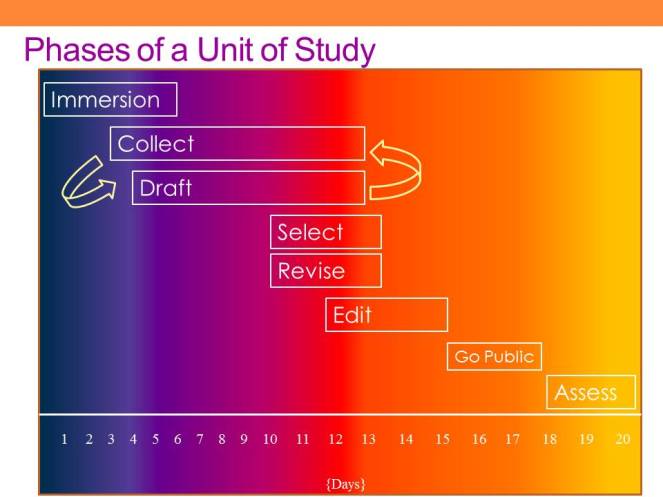Here’s a slide where I attempt to explain (very briefly) what I mean by each of the phases in a unit of study.