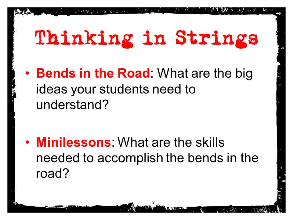 Exerpt from my MEANINGFUL MINILESSONS presentation: Develop teaching points based on a bend in the road.