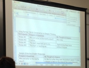 For instance, when Maggie showed us how she’d teach students to interpret photographs, she suggested we can have students create photo stories to demonstrate their thinking after viewing a photograph. Some ideas for creating photo stories were: