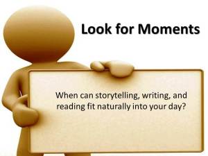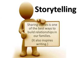 After reading the quote “sharing stories is one of the best ways to build relationships in our families”, I thought about how I’m now getting to the point in the year where each of my group of students is starting to feel like a family. And literally the day after I read the quote, one of my students says to me (after we had discussed some 6 Traits of writing from the text book), “hey wanna hear a story about X.” I smiled because I thought of what I had read here, and said, “sure!” I knew from past experience teaching that is how the students and I built a rapport and I like hearing their stories and I love that they are willing to share them with me. So now I look for a daily “Hey I have a story that totally relates to what we just read” moment from this student.