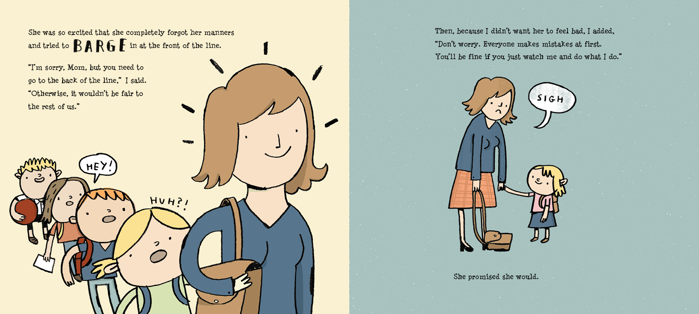 Take a look at some page spreads from The Day My Mom Came to Kindergarten: