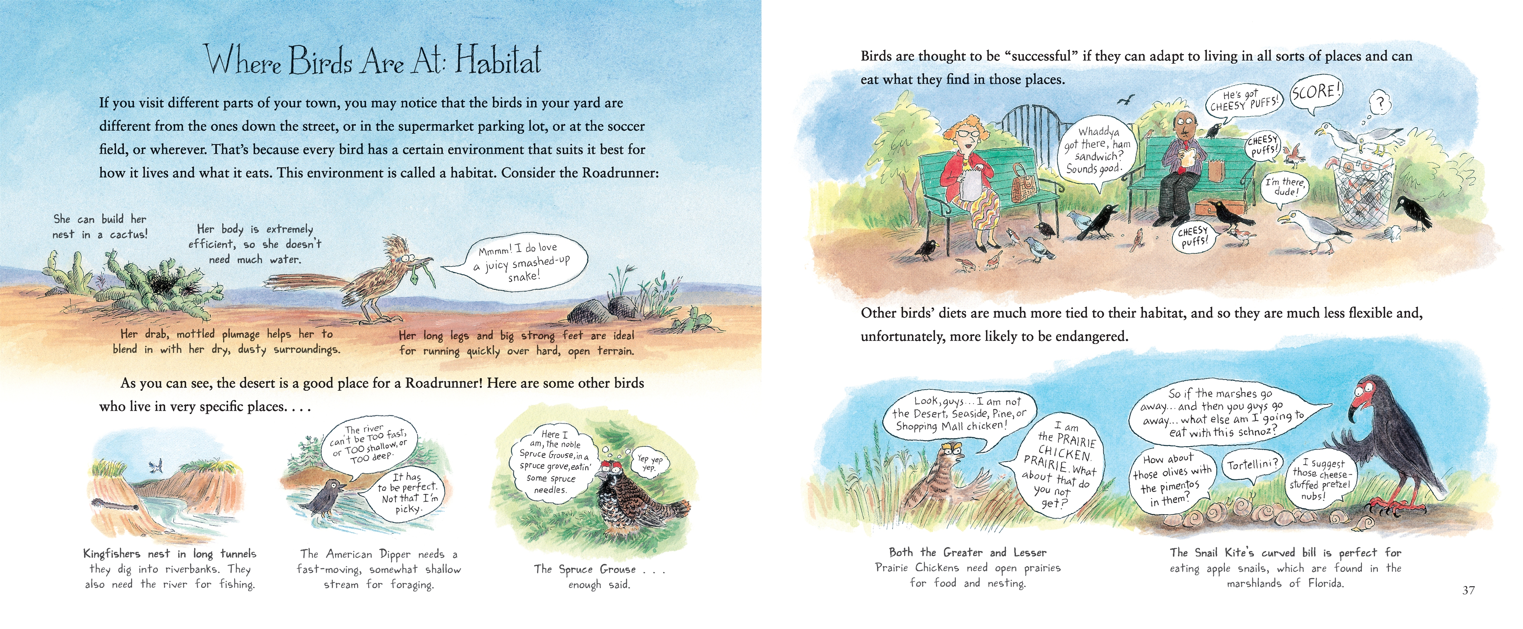 - embed humor into an informational text (A lot of the humor in this book comes from the birds whose say funny things in speech bubbles.)