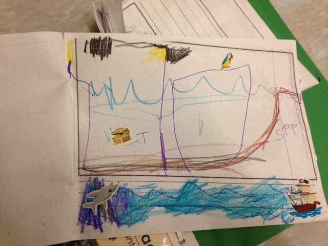Mike was “done” everyday- about two minutes into writing workshop. I thought writing my own book about pirates during a mini-lesson would have been or handing him books about pirates would be engaging enough. I even, pitifully, tried to talk like a pirate, but he was still “done”. As I last resort, I showed him some pirate stickers I had in my closet. Mike took them and started sticking them on each page. He then proceeded to draw around them, label them, and write sentences for the next three days. I never gave him stickers again, but he hasn’t been “done” since.