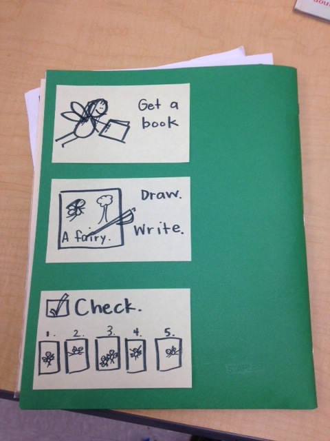 I have always attached tools directly to kids folders, but why not have them focus on that child’s interests? The first tool is a racetrack that the student moves across as he writes each page of his book. This Nascar-lover has built stamina and can finish a book in one writing workshop period, instead of in seven.