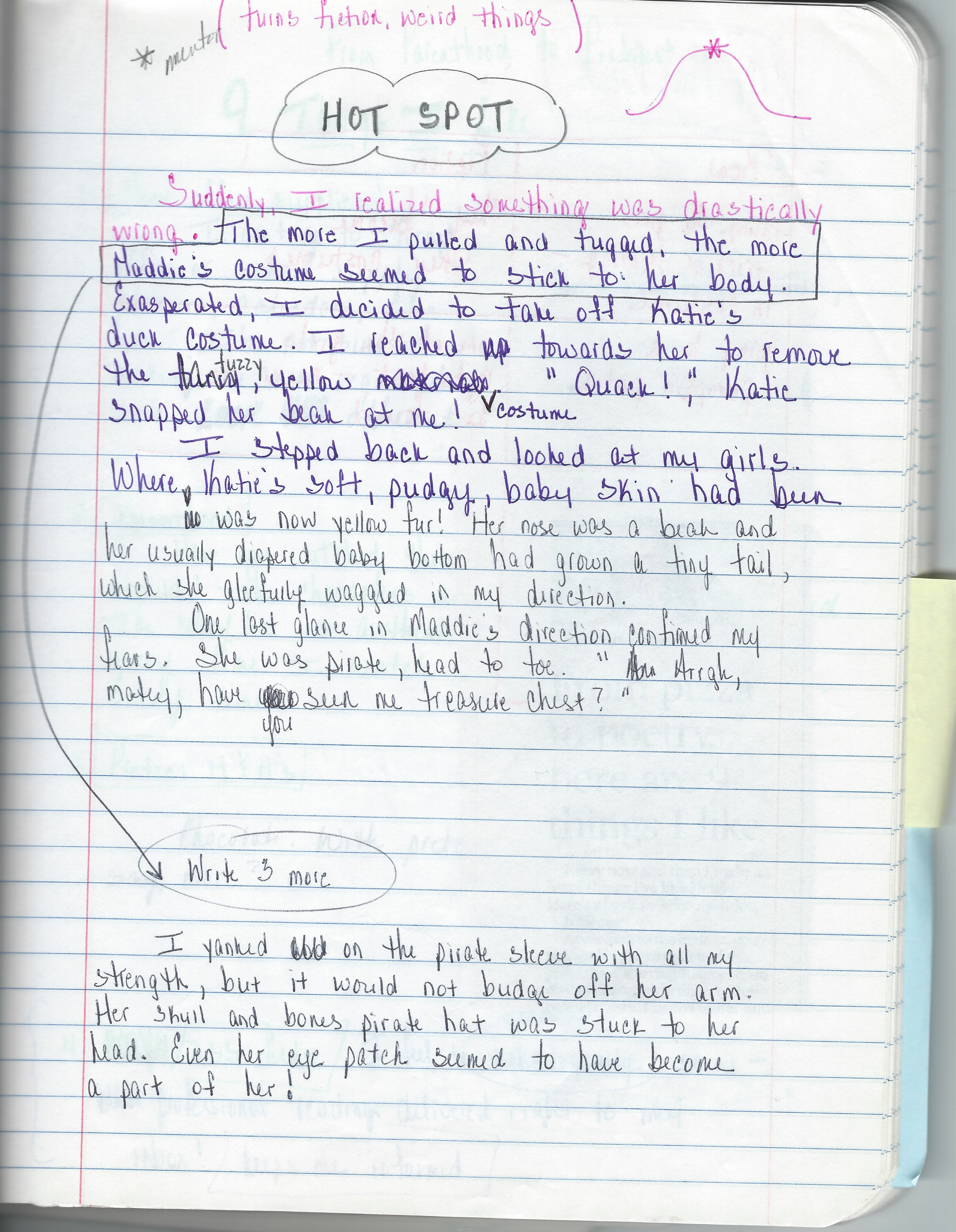 - The hot spots were described with sufficient detail and specificity. We attributed the depth of detail to both writing the hot spot first and also the use of the revision technique of “Add 3 More” (seen in my notebook entry above.)