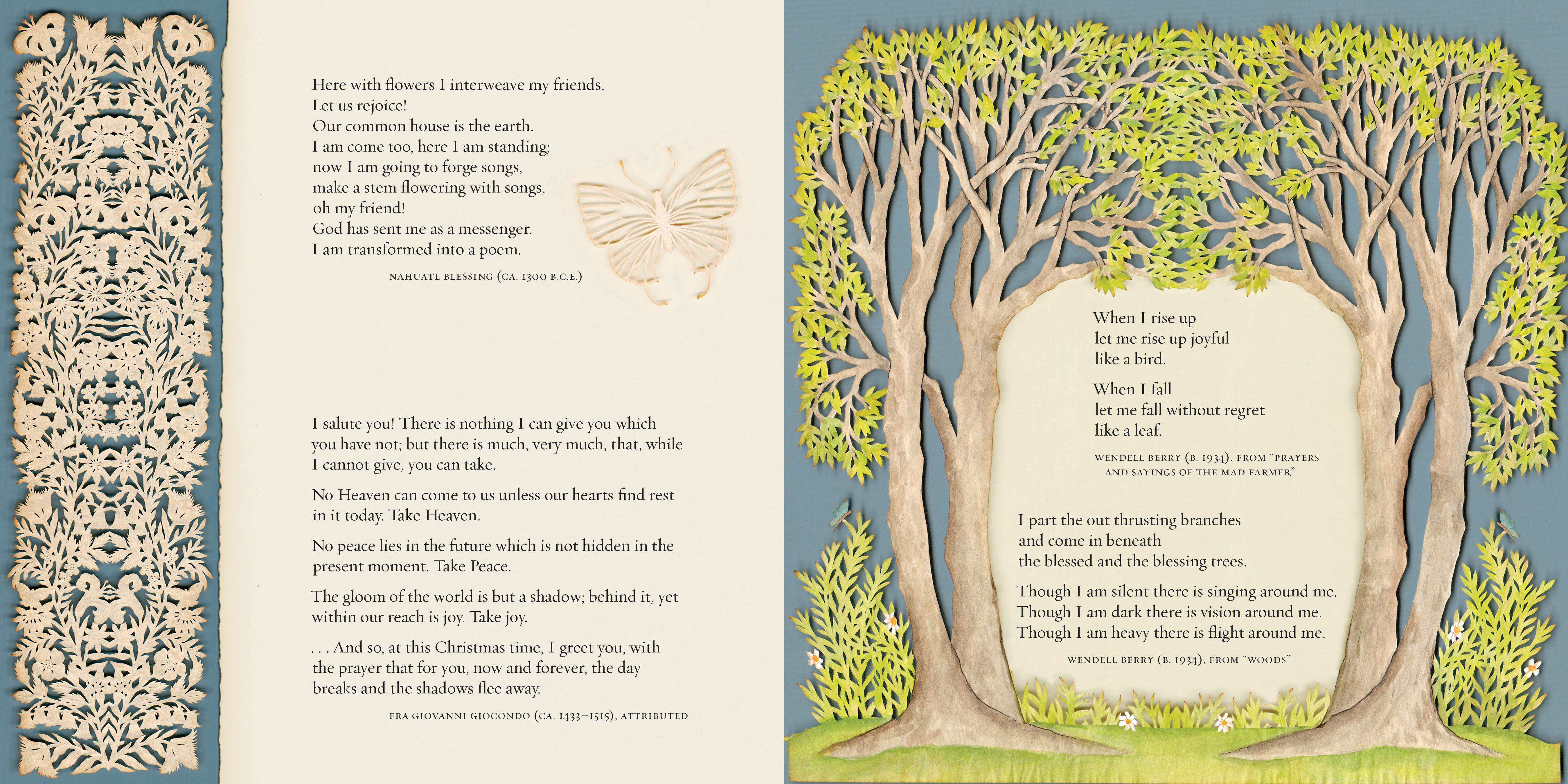 I’m sure you have already gotten a sense for how beautiful the book is by looking at the cover and the interior pages you viewed above. Because I couldn’t resist, here is one more superb cut-paper illustrations that grace the pages of this book: