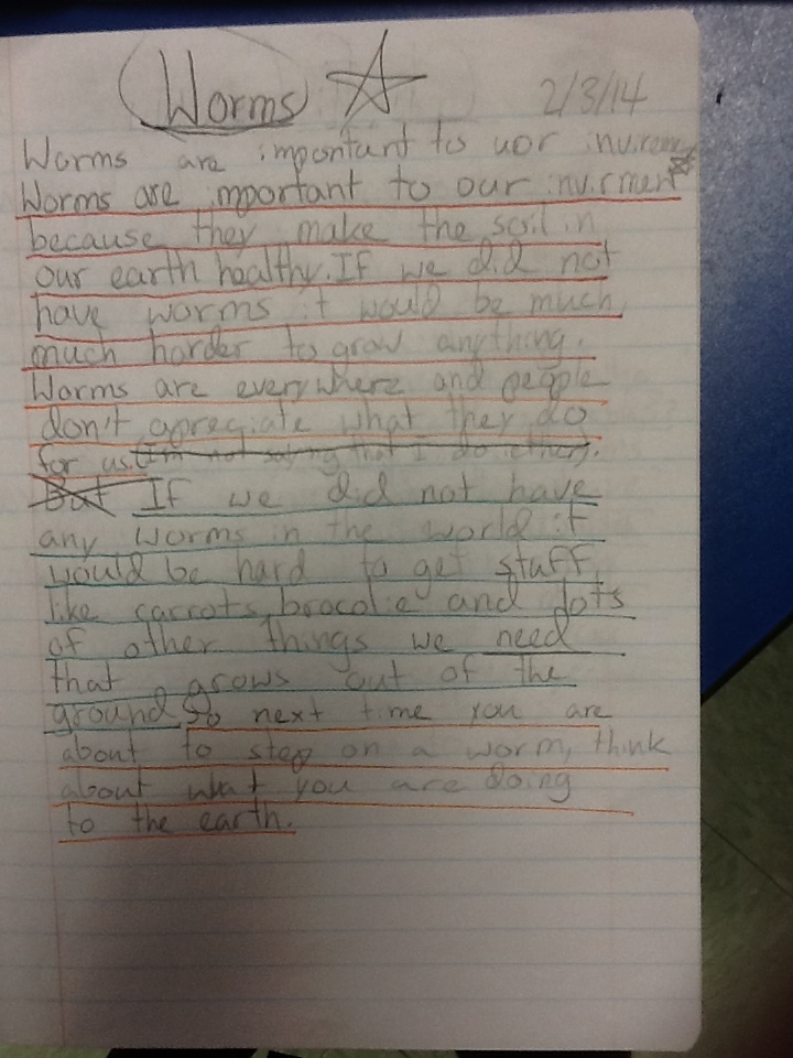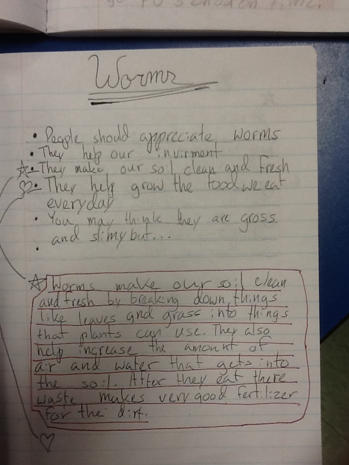 Then, the students returned to their writing, marking up parts in the writing they had done that would serve as evidence for each category.