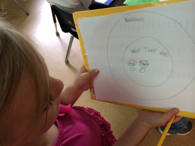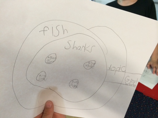 As I was thinking about this idea, of narrowing a topic, I was brought back to the first Saturday in April. It was my first Teacher Poets class with Chris Lehman and our topic for the class was “Slivers are Big.” He showed us a concentric circle like model to use when narrowing a topic for a poem. Here is the archived YouTube video of the class session if you are interested in watching. I wondered if my first graders would be able to grab onto this way of choosing a topic for their informational pieces.