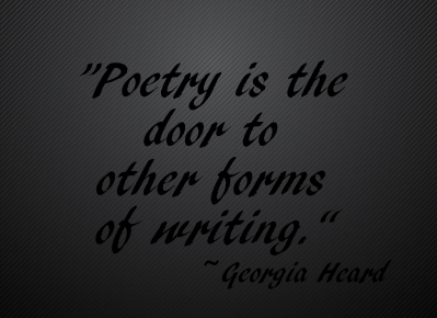 Lucky you to stumble onto Georgia Heard. I have used her work with my Engish Language Learners and they have enjoyed writing poetry. I appreciate the ideas you share with us in this post. I agree with one of your commenters that every day (or as often as possible) should be poetry day because then the students become familiar and comfortable with a wide variety of poetic styles and voices, and, ok,…..because the world seems lighter and brighter with poetry in it!