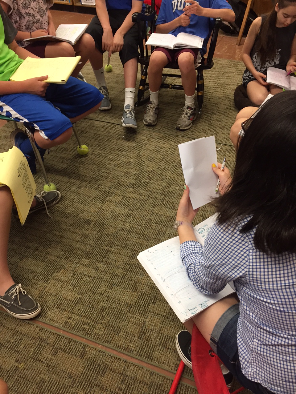 You will need to facilitate these discussions to keep them from disintegrating into shouting matches (these are kids after all, and they will get carried away!). They will need no more than ten minutes for this – a limit on time keeps them focused and lends an urgency to staying on topic. The last three minutes are to write down their stance and two compelling reasons in their writer’s notebooks. I make sure my students do this, so that they don’t forget what they were going to say (a lesson we learned the hard way).