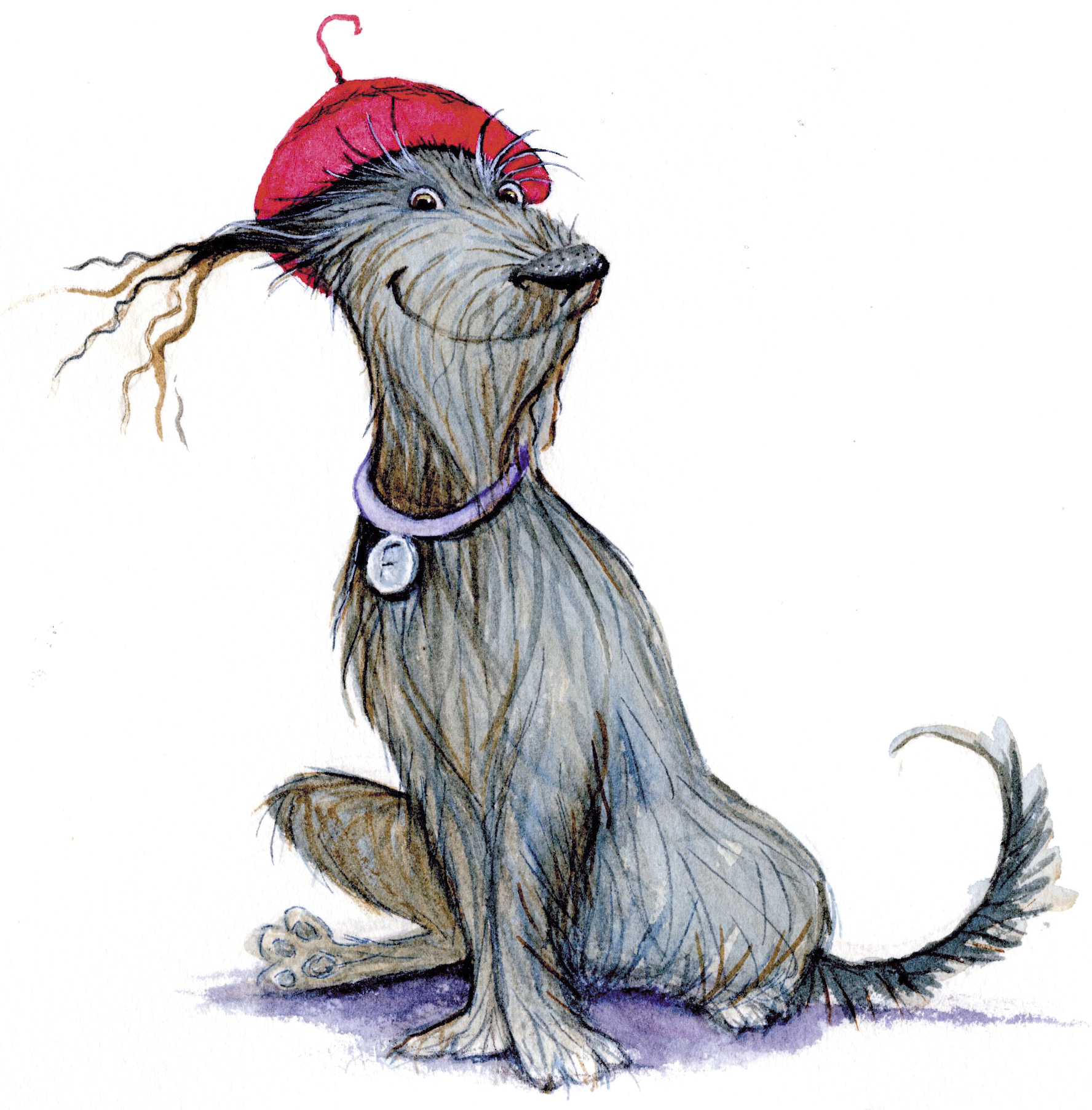 Lindsey Barrett George was one of the presenters and she was (literally) stopped by Fergus’s oversized painting. She asked about my dog’s tail and suggested I write his story…”write what you know.” (What a concept!) That evening I began to write a children’s version of Fergus’s adoption.