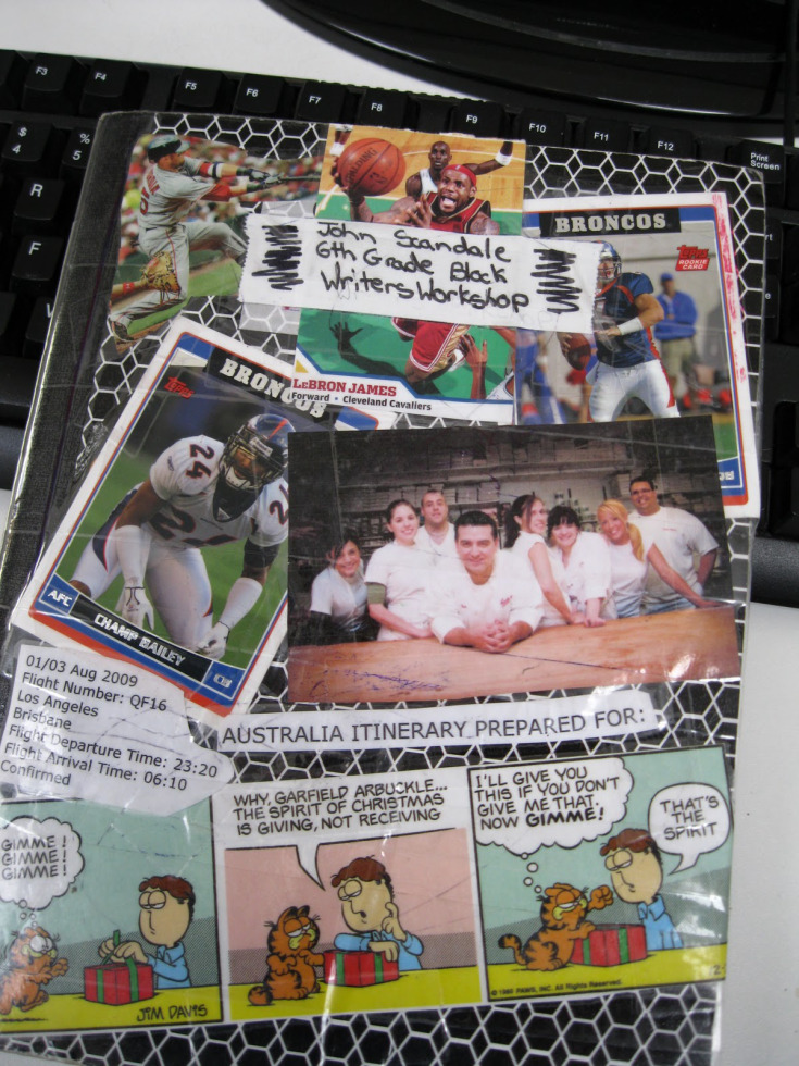 It’s a sad fact that our middle school “Lost and Found” bins seem to collect so many writer’s notebooks in particular. Whenever I leaf through these, I invariably discover that they are used mainly for note taking, with a few sketchy entries and a few responses to prompts. In elementary school, writer’s notebooks are introduced with much fanfare and joy, decorated with such celebration, and remain at the center of daily writing work. Something of this joy and purpose seems to get lost in middle school, just when most kids feel ready to explore deeper ideas and experiment with their writing voices. From the very first day of writing workshop, the notebook stays at the center of our writing lives in Room 202 in the following ways: