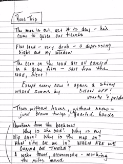 On a family road trip I wrote: The moon is out, yet it is day. He has come to guide our travels. Sounds like a great opening to a picture book or a poem.