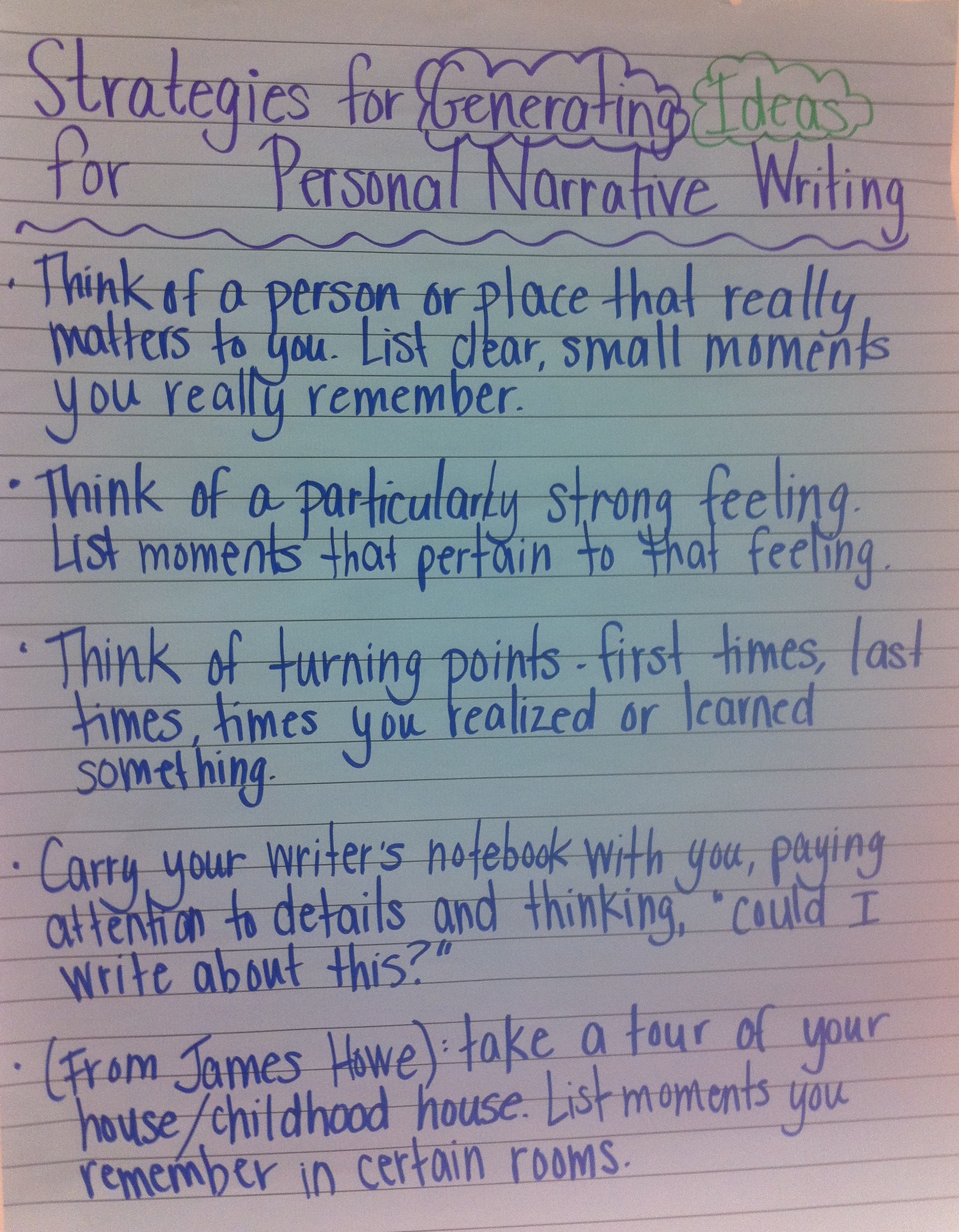A simple chart from a personal narrative unit may provide inspiration today: