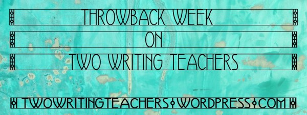 Throwback Week continues on Two Writing Teachers. Every day this week we are featuring one of our favorite posts from our recent history. We hope to give you a chance to revisit great content or to catch up on posts you might have missed.