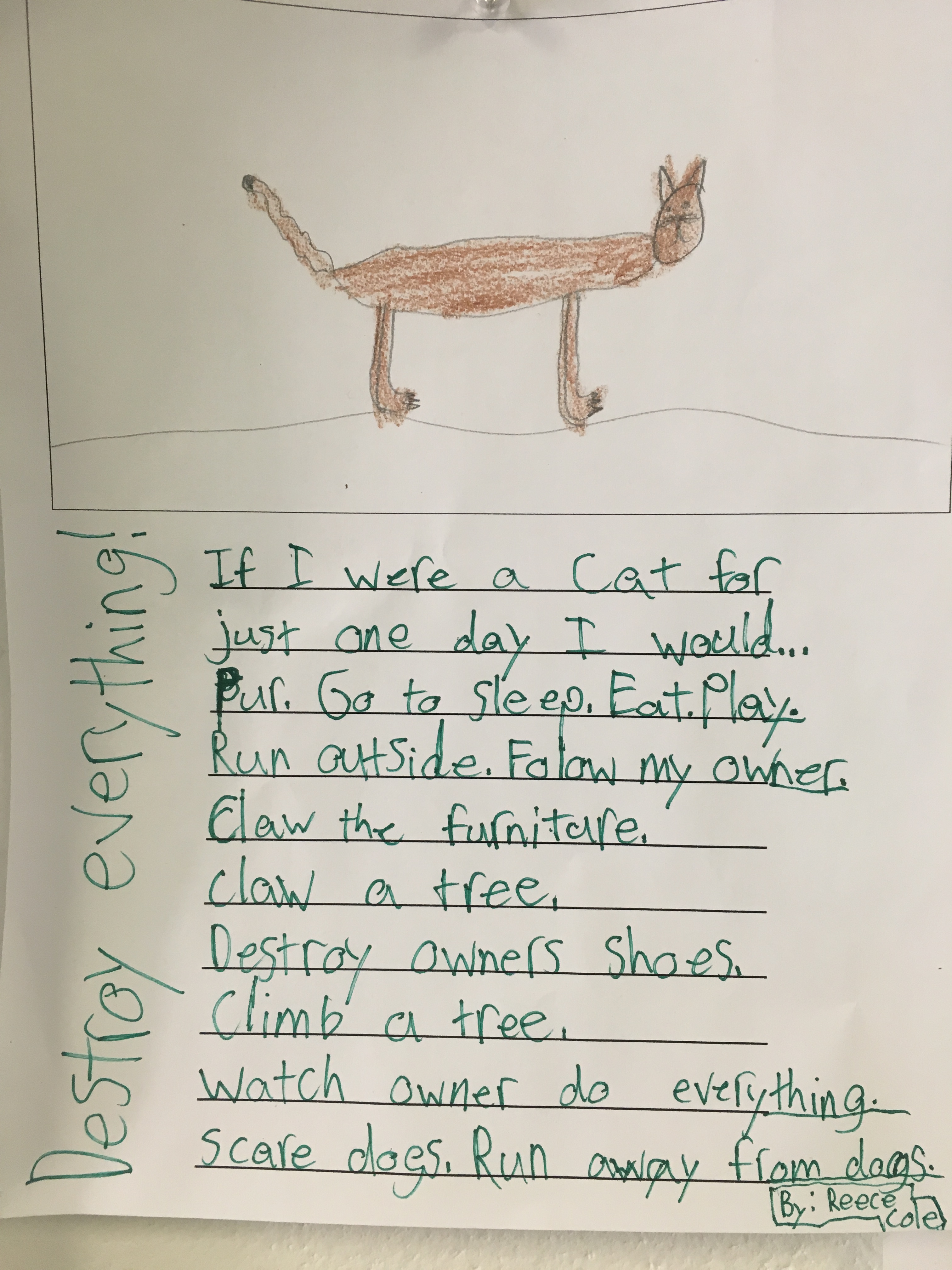 It was wonderful to use The Poem Farm as a resource for student mentor texts as we read through the sample poems. We pondered different animals and talked about what we thought it would be like to live their life for a day. Students then brainstormed lists of activities, behaviors, and characteristics of their chosen animal. From there I gave them lined paper that had the words If I were a _______ for just one day and off they went.