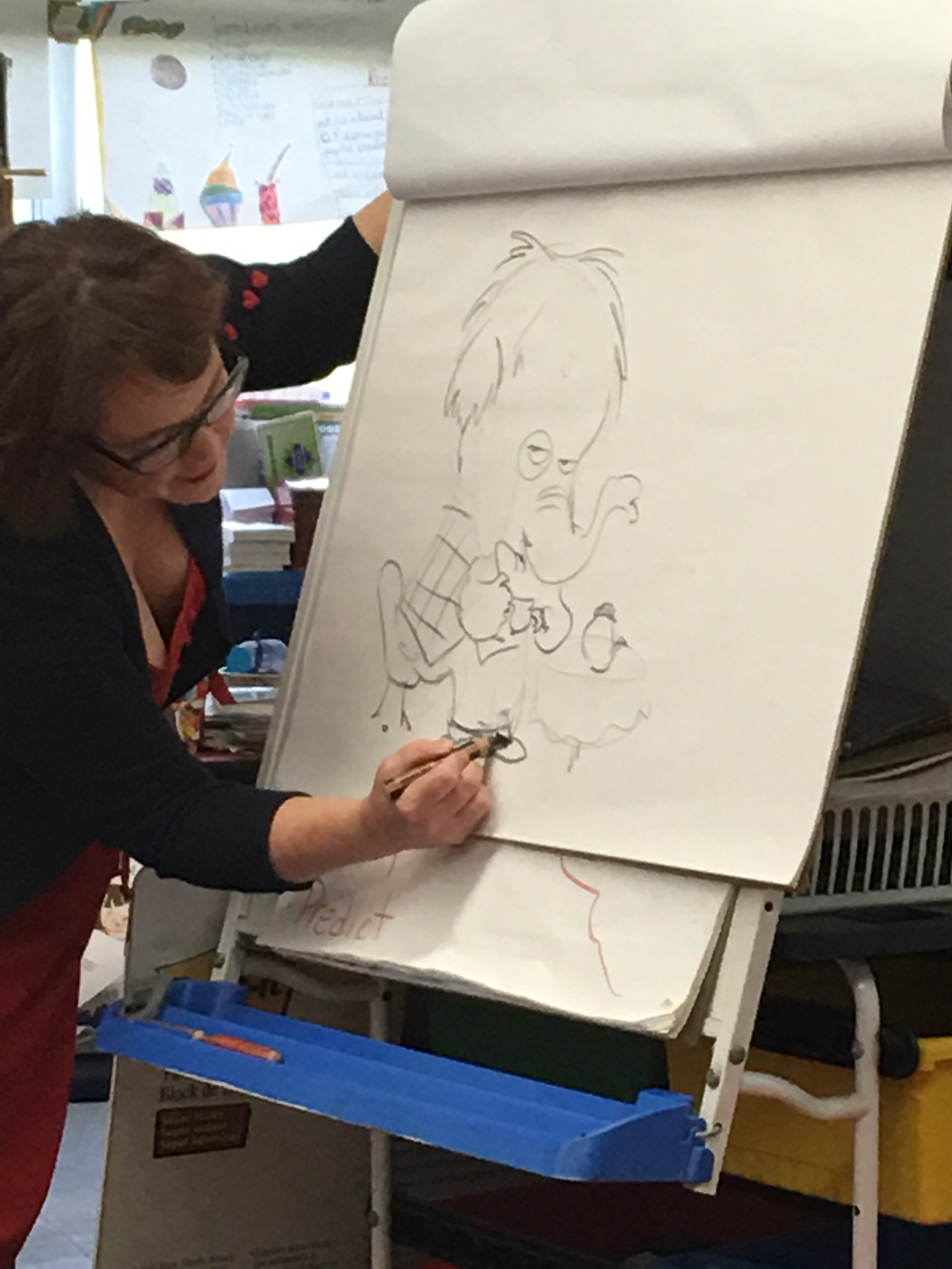 Kelly Light sharing her illustration of a wooly mammoth.