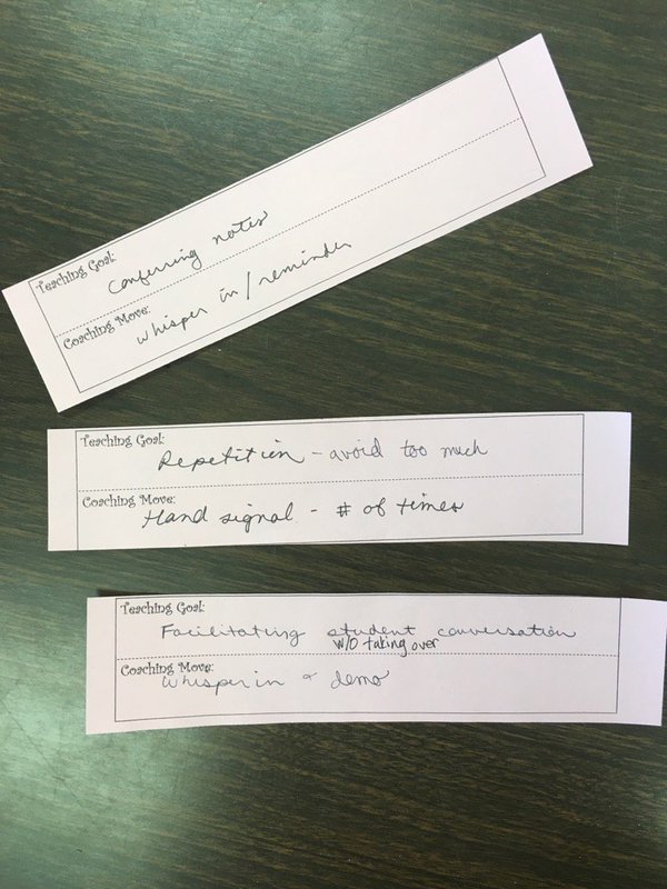 As a literacy coach, my preference is to visit on any given regular day to be a part of what is authentically happening, and to have genuine, in-the-moment conversations in the classroom. At the same time, it is helpful to have some structure around how a given classroom visit might go--so that people know what to expect. Conferring with teachers and co-teaching makes this possible.