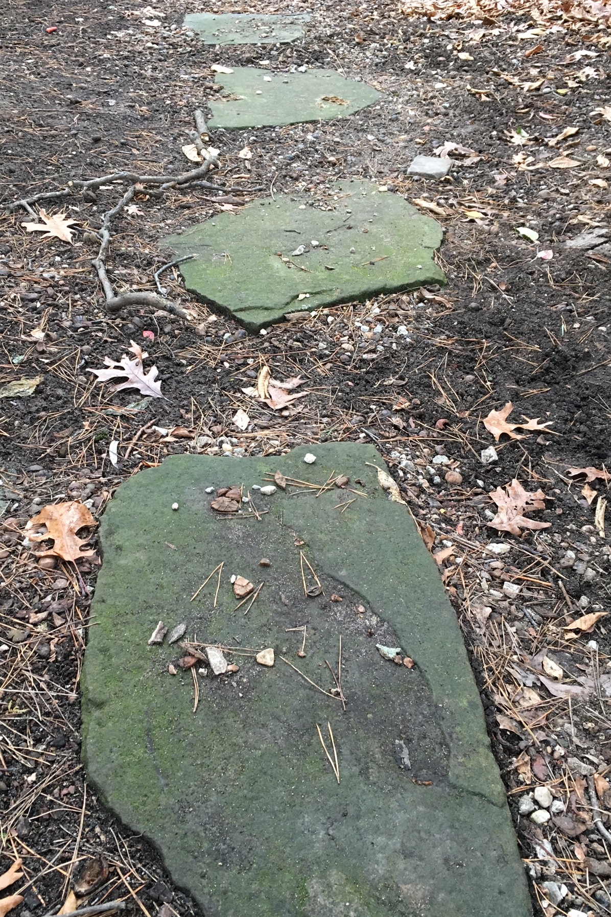 Then I got up on New Year’s Day, made my coffee, and took the dog outside. As I was standing on the side of the house, I began examining the stepping stones. They had once again revealed themselves after the previous day’s melting. They line one side of the house along a privacy fence that divides it from the next house over. Each stone is a little bit different yet they are all the same. Each is slightly green from age, has jaggedy sides, and little bumps and divots across the surface. Each is a single step. However, each comes with its own unique qualities. As I looked at the steps I realized that all the moments that have divided my life have been a step. Examining this path, I looked at the muddy dirt in between each. I imagined a miniature me trudging through the dirt to reach the next stone ahead and thought about the feeling you get when you reach a new step, a next chapter, a moment of movement and change. That “raise your arms” feeling of accomplishment. I thought about standing there, a centimeter sized me, looking back at the steps I had already crossed and the mud I had already drug through. I thought about looking forward, at the many steps that await. The many challenges ahead. I thought I must remember that feeling, that feeling of standing on a fresh step for the first time.