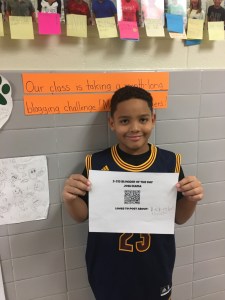 One thing I’ve tried this year is selecting a blogger of the day. I put a QR code that links to the student’s blog posts and ask the student to write down the topics he enjoys blogging about. I hang this paper in the hallway and then take a picture of the blogger. It’s a small tweak I added this year that has increased the motivation of students to blog and get recognized!