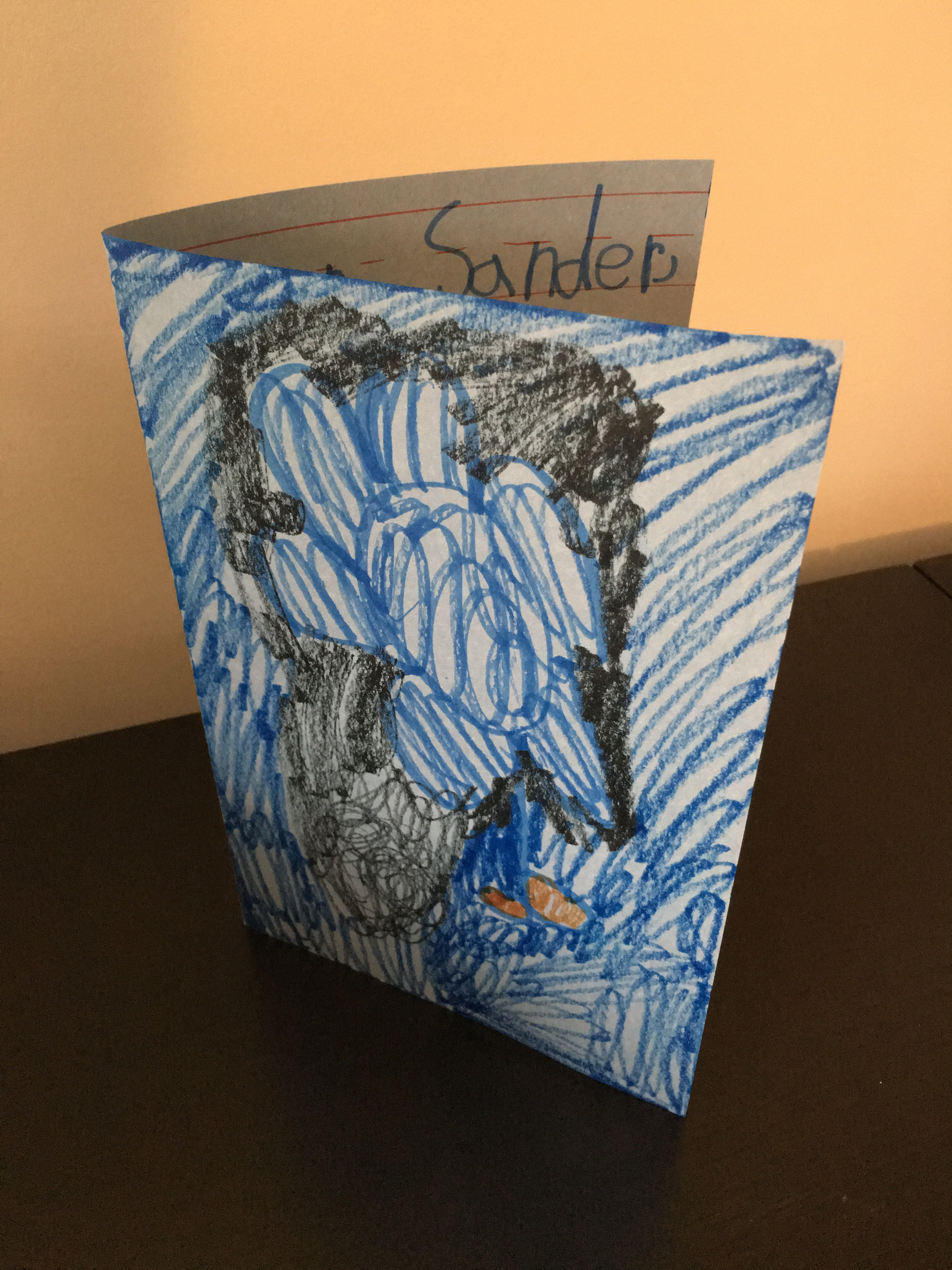 While I know the baby cannot read yet, I didn’t want to minimize her desire to do good — or to write. After breakfast, Isabelle sat at her craft table to create a card for her new baby cousin. She was proud of her card when she finished and enjoyed putting it in the mailbox.