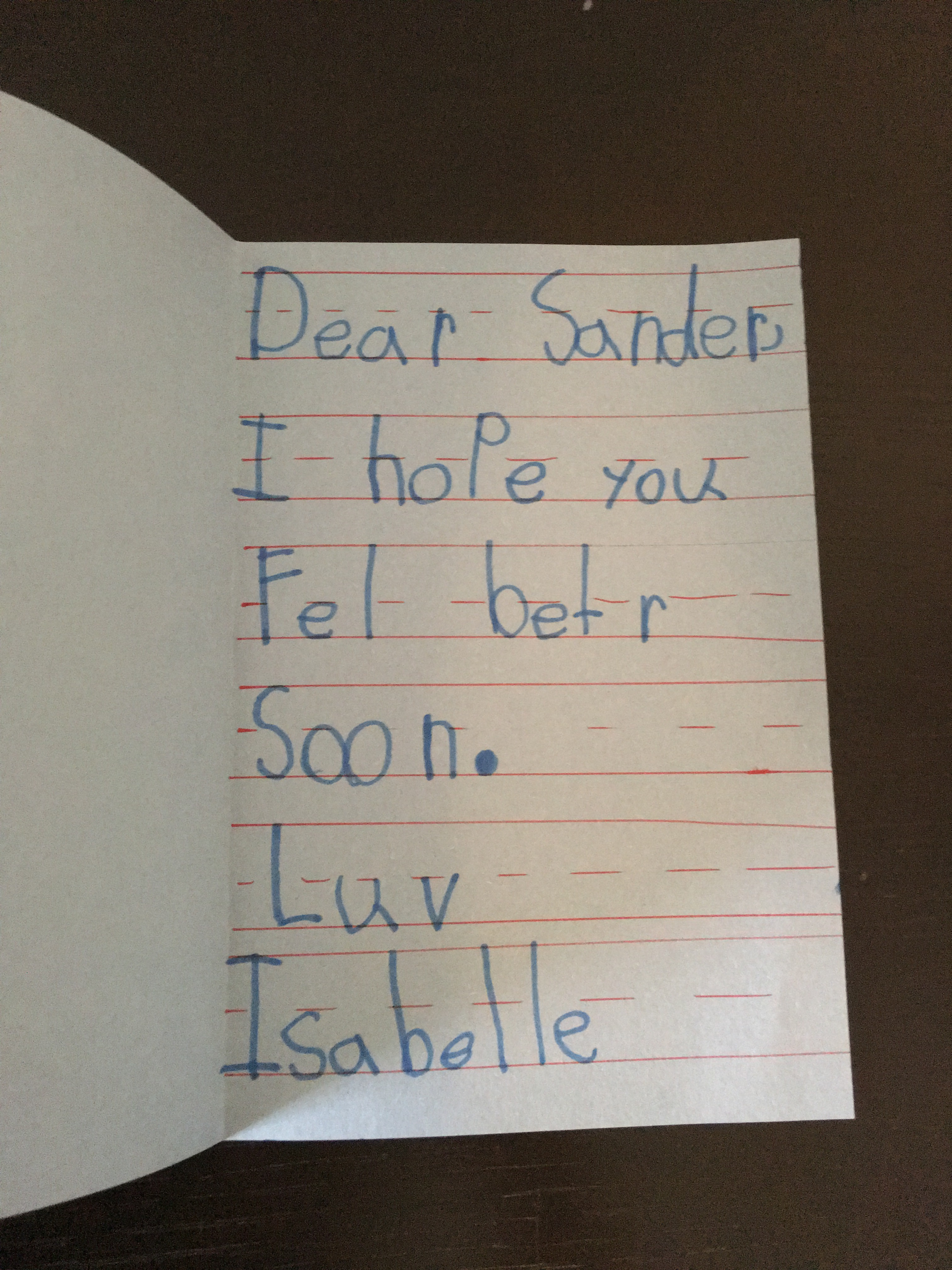 Last week, my family experienced great joy with the birth of a new cousin. Three days after the baby was born, he was in the hospital. When Isabelle crawled into bed for a snuggle on Saturday morning, I told her how our new cousin had to have a spinal tap and blood tests the previous night. As the big sister of a baby brother, she understood the severity and immediately asked, “Can I make the baby a card?”
