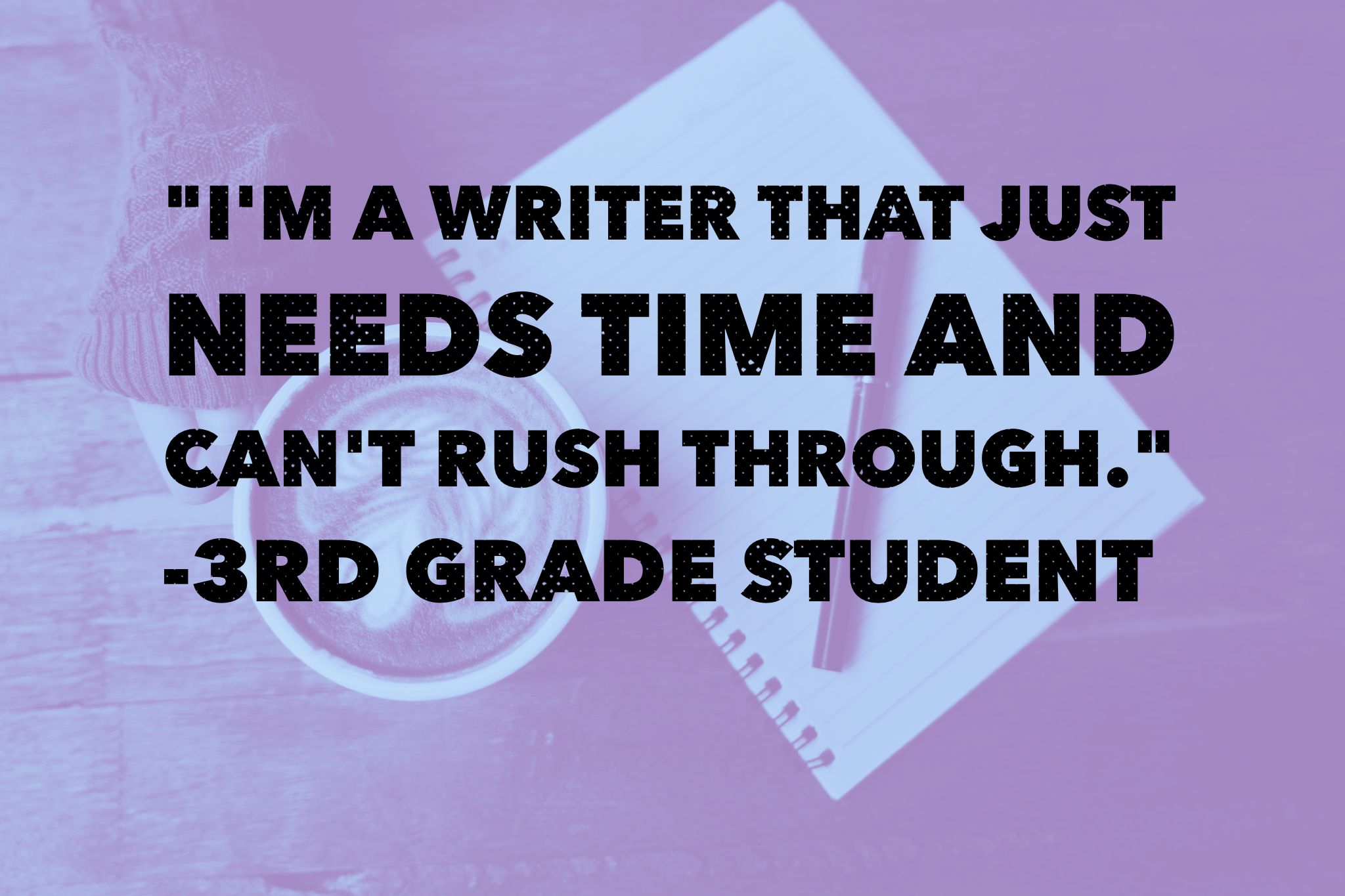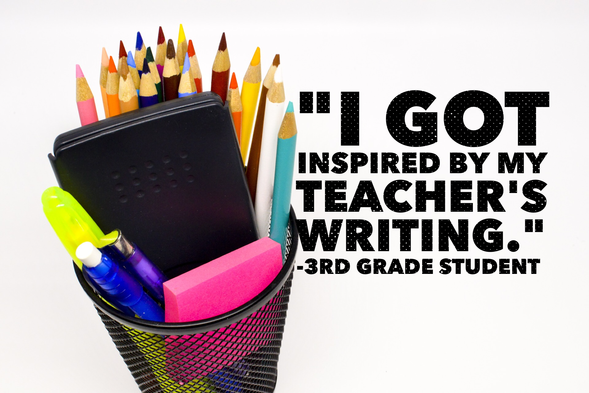 Those students’ words were striking. To believe you are a writer who can write anywhere you go signaled transference to me- this student will take what she learned about writing and apply it across settings and experiences. The writer who was aware she needed time revealed a metacognitive understanding- she knows that she is the type of writer who needs ample time to get her words out the way she wants them to be. As a firm and passionate believer in teachers as writers, my heart leapt with joy at the last quote- a student who said my writing inspired him! This was a student who created a character and built a series around him, writing more than 20 books this school year. (Safe to say he’s inspired me, too.)