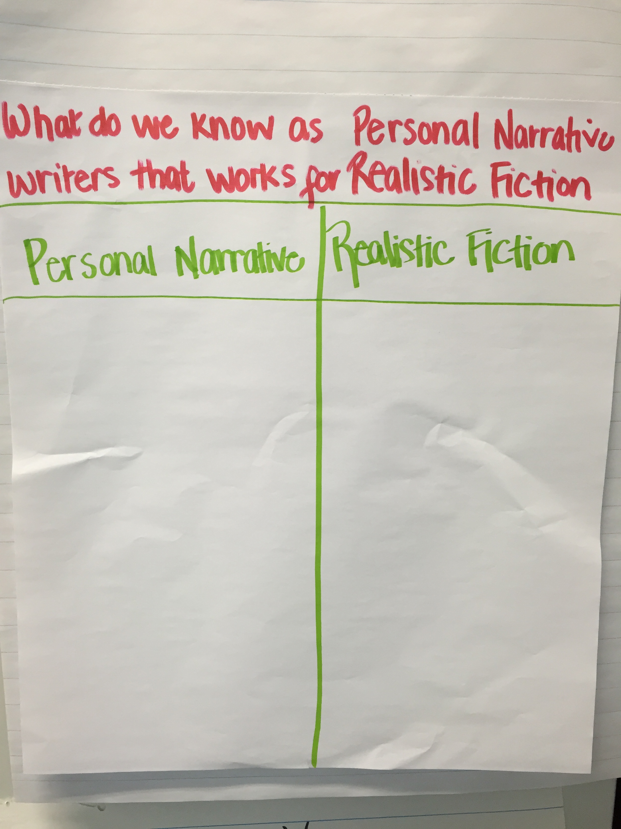 I have realized that students benefit from explicit instruction when we are transitioning to new units. My assumption as I write this post is that you teach genres of writing in multi-week blocks of time. For example, you may start the year with a personal narrative unit, move into a realistic fiction unit, and from there into an information or opinion unit. The order does not matter as much as the concept of teaching in genre-based units. Students don’t always make the transfer as intuitively as we might think. So how to help them?