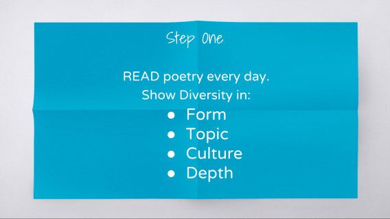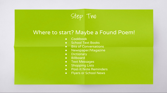 Let students be a bit free, creative, silly and maybe even a bit fantastic or bizarre. Share poems and lines from every emotion and feeling. From all walks of life and corners of the world. Through your own demonstrations, let go of the idea of writing a good poem. For all the tips and ideas I am about to share, take a risk and try them yourself. In doing so, you will create a set of mentor texts for your students. Save all your drafts or create one draft and work through it in front of your students. Show them your process, (you may discover you have a process if you didn’t know you did already).