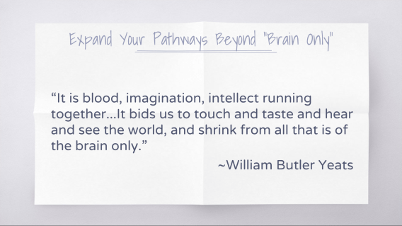 A school is a place that seems to serve a “brain only” idea, and it can be our job to figure out how to weave the other parts of learning to the surface. Poetry allows us to expand our thinking beyond a “brain only” idea and opens us up to really see and really experience the world.