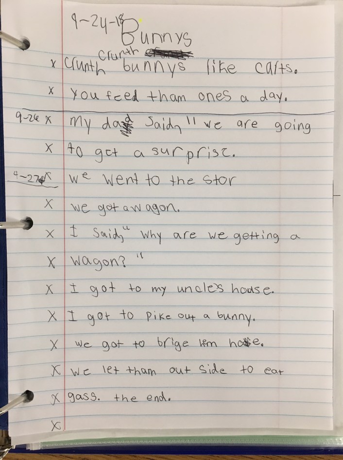 You can see where he began with the name of his bunny, taking the bunny home, and then it starts to look like a “How To” piece. He started with one intention but like many writers, began to think in different directions.
