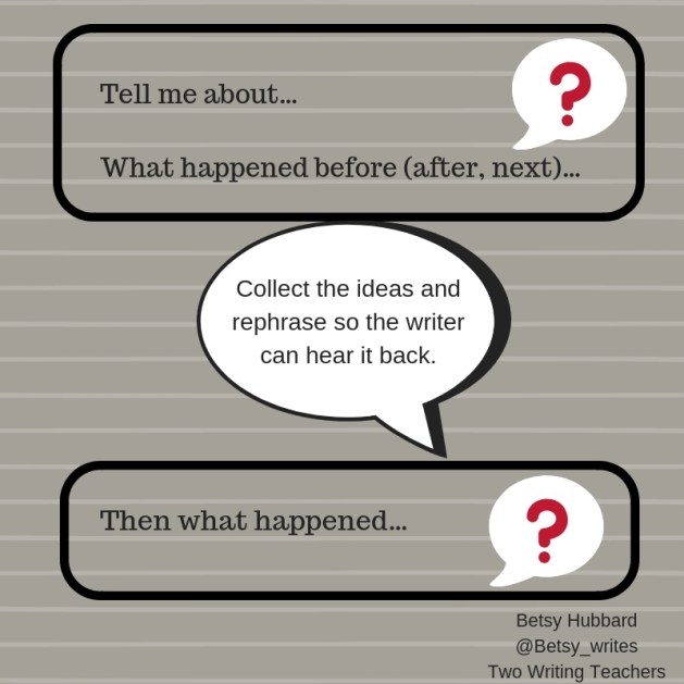 This blog post makes me happy, Betsy! As the mom of a kid who needs lots of oral rehearsal (Wonder who helped me understand that? Oh… you!), I often use audio and video recordings at home to help Isabelle elaborate on her thinking and get the story out in an organized manner. How wonderful for Aiden that he had a teacher (YOU!) give him lean prompts and classmates who helped him further shape the structure of his story.