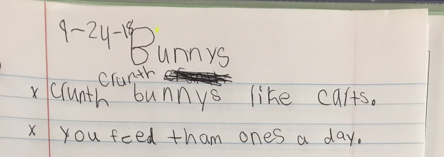 You can see where he began with the name of his bunny, taking the bunny home, and then it starts to look like a “How To” piece. He started with one intention but like many writers, began to think in different directions.