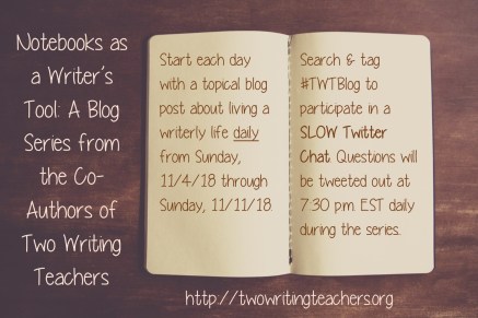 Finally, on Sunday, Deb shared four beautiful texts that will be mentors to all the notebook writers in your classroom.