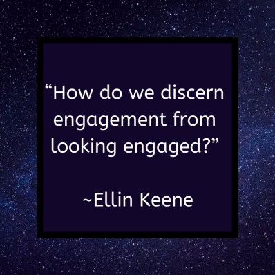 I have mulled over this question. I have gone back to my notes, and I recently began reading Keene’s book to dig into this more. I think this is a question we should be asking ourselves over and over. In the writing workshop, how do we discern engagement from looking engaged?