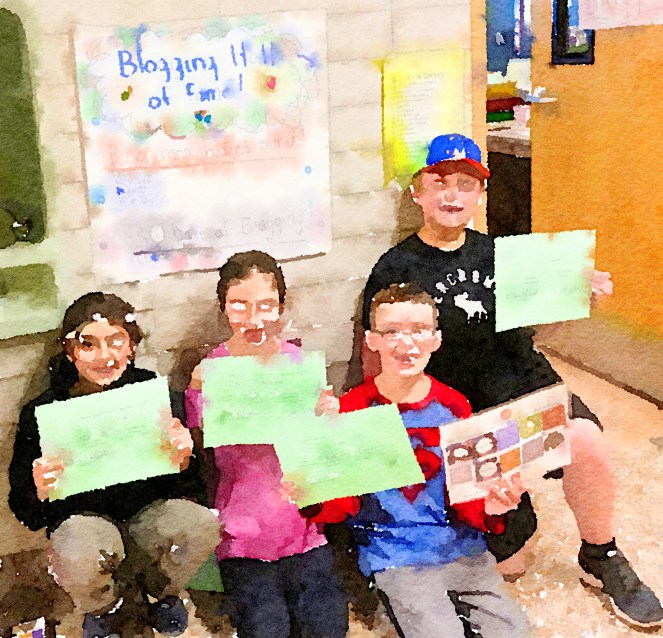 After another round of state testing, we celebrated the end of our blogging challenge on May 3rd. Students earned certificates and copies of their digital badge sheet. Students who earned 7 or more badges received a prize and students who earned ten or more badges were listed on the “Blogging Hall of Fame.”