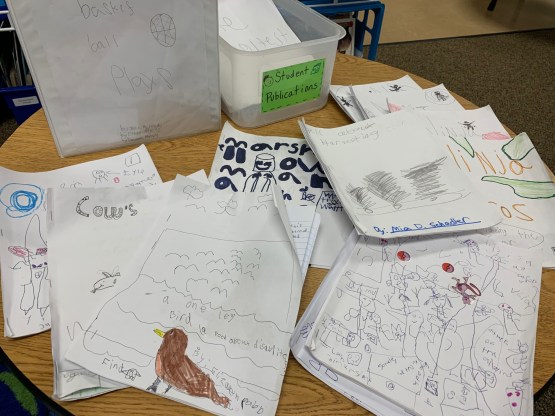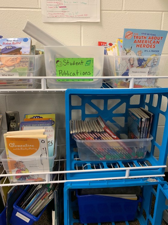 To be more clear, I was entirely out of the way on this. Kids shared with me what they wanted to share. There was a box in our classroom library, and I had no part in it. Students filled that box, and they all read all those books made by their peers. Were they perfect published pieces? In some ways, yes. They were absolutely perfect. They were perfect examples of wild writing. They were perfect examples of confidence. They were perfect petals from blooming authors. They are the pieces that meant more or the most to each of them. I truly believe, of anything I did all year long, this will be what my students remember from third grade, and it was all driven by their own ideas, motivation, and excitement. I just provided the time.